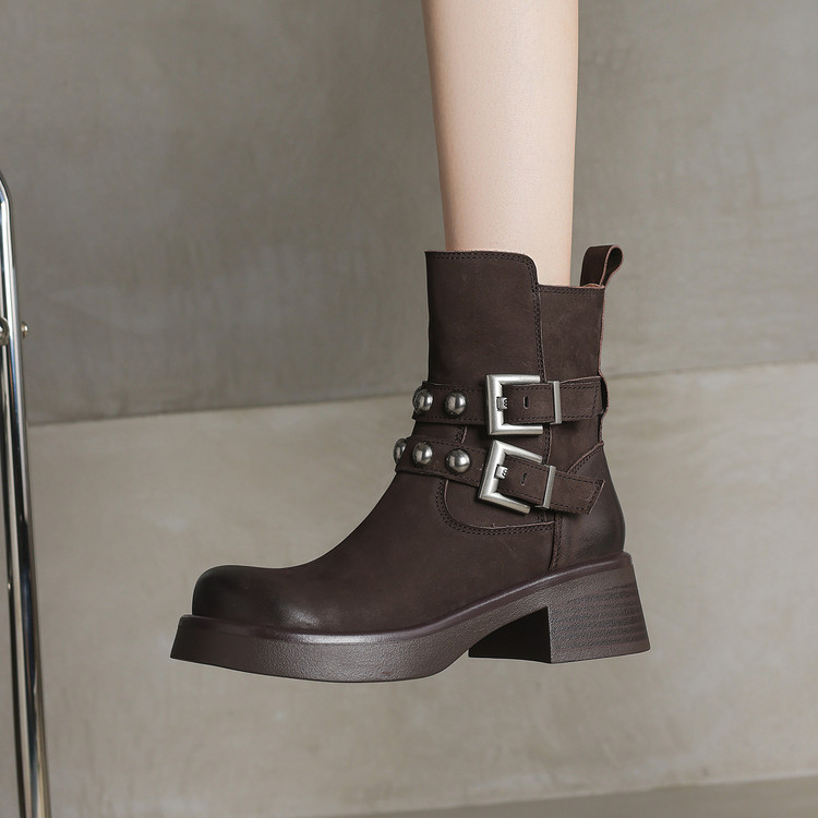 水洗牛皮~英伦风复古短靴