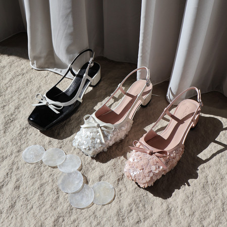 2026夏季爆款方头蝴蝶结亮晶珠片设计后空女鞋