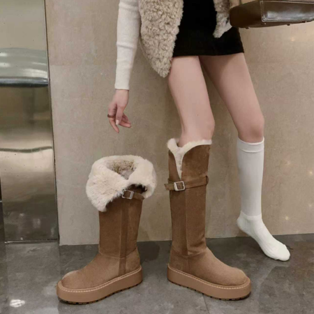 【超火爆款 备货上架】现货现拿 厚底增高系带雪地靴 中筒保暖加绒毛毛靴 数据超好 上架即卖