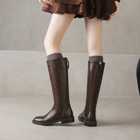 主推现货头层水洗打蜡牛皮中筒靴超好穿舒适百搭