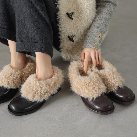 显秀气一点的毛毛鞋 交叉松紧带方圆头内增高毛毛单鞋