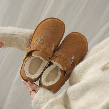 显秀气一点的毛毛鞋 交叉松紧带方圆头内增高毛毛单鞋