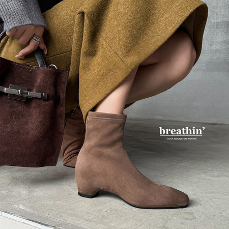 牛翻皮~坡跟飞织长靴 ~可以翻折下来穿