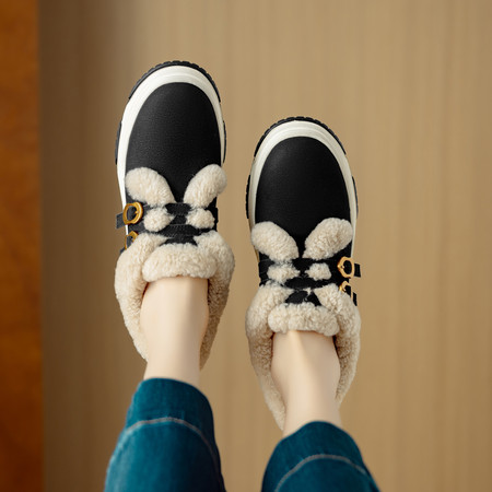 欧美浅口圆头超高跟鞋女粗跟纯色单鞋双层防水台一字扣女鞋